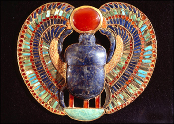 A Memphis Egyetem kutatócsoportja mellett azonban az utóbbi időben egy másik kutatócsoport is intenzíven foglalkozott Tutanhamon környezetével, egészen pontosan a híres skarabeusz nyaklánccal, amelyet a fáraó sírjában találtak meg. Az egyiptomi termékenységszimbólumot, a skarabeuszbogarat ábrázoló ékkő kémiai összetételét még 1999-ben bevizsgálta egy olasz geológusokból álló szakértői csapat és megállapították: az ékkő 98 százalékos szilícium-dioxid tartalma miatt minden bizonnyal a Szahara Nagy Homoksivatagra elkeresztelt keleti részéből származik.